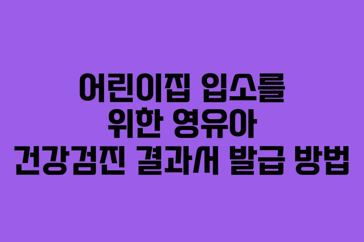 이 정보를 통해 영유아 건강검진 결과서를 쉽게 발급받을 수 있습니다. 어린이집 입소를 위한 서류 준비가 원활히 이루어지길 바랍니다!