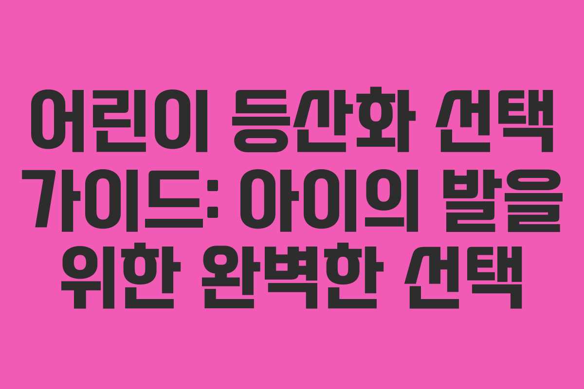 어린이 등산화를 선택할 때 가장 중요한 점은 무엇인가요?