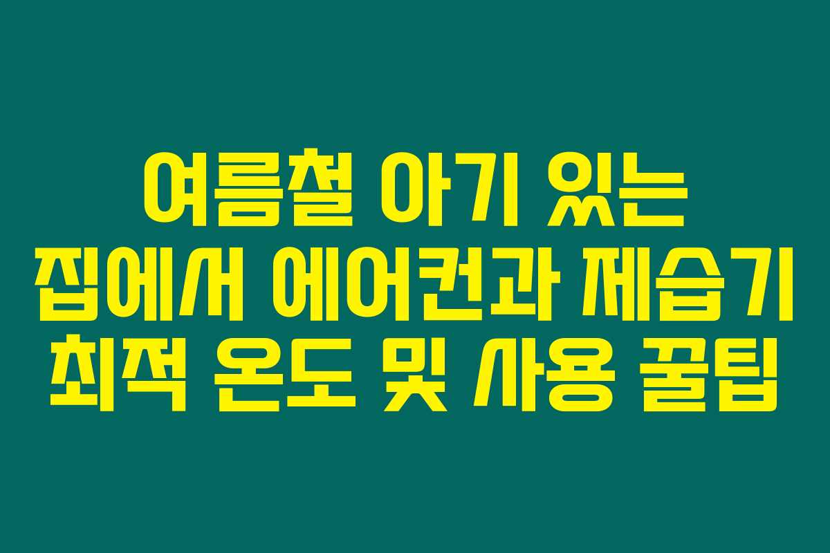 아기 건강을 위해 여름철 에어컨과 제습기 관리는 너무나 중요합니다. 아기 있는 집 에어컨 적정 온도와 습도 조절 방법을 통해 더 나은 공간을 만들어주세요. 여름철에 아기의 건강을 지킬 수 있는 꿀팁으로 여름을 쾌적하게 보내도록 해요!