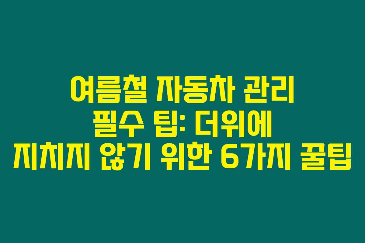 여름철 자동차 관리에서 핵심적인 팁들을 통해 여러분의 차량을 안전하고 쾌적하게 관리해보세요. 좋은 팁들을 통해 모두 안전한 여름 보내세요!