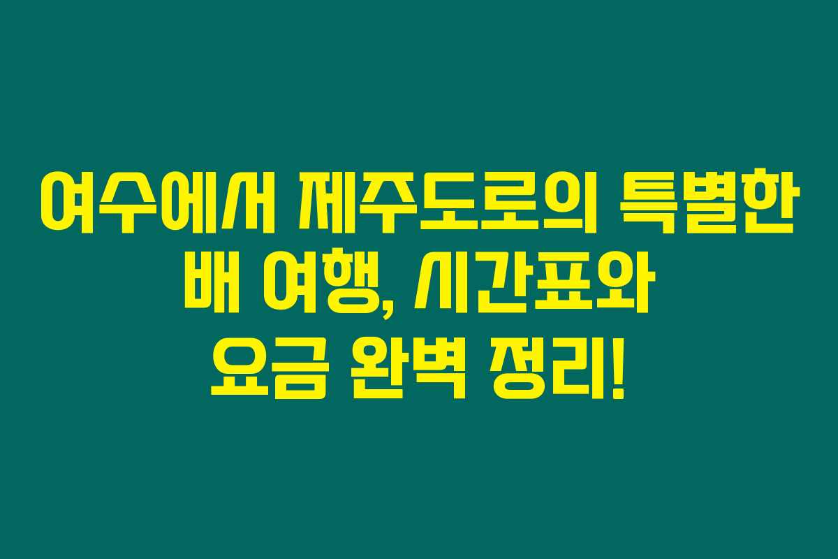 여수에서 제주도로의 특별한 배 여행, 시간표와 요금 완벽 정리!