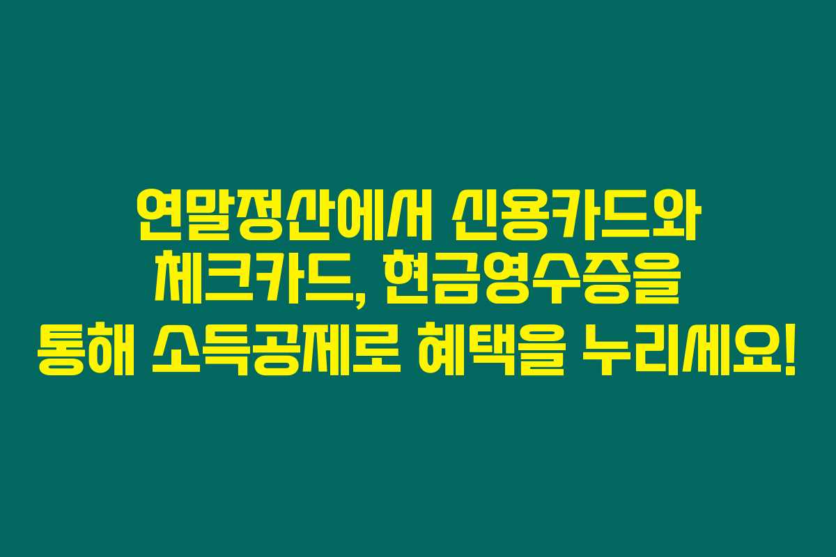 연말정산에서 신용카드, 체크카드, 그리고 현금영수증 소득공제는 모든 직장인에게 꼭 필요한 정보입니다. 저 또한 지난해 이 공제를 통해 상당한 세금 절감을 경험했어요. 먼저, 이들 카드 사용으로 발생하는 수익도 소득으로 간주되므로, 이를 잘 활용하는 것이 중요하답니다.