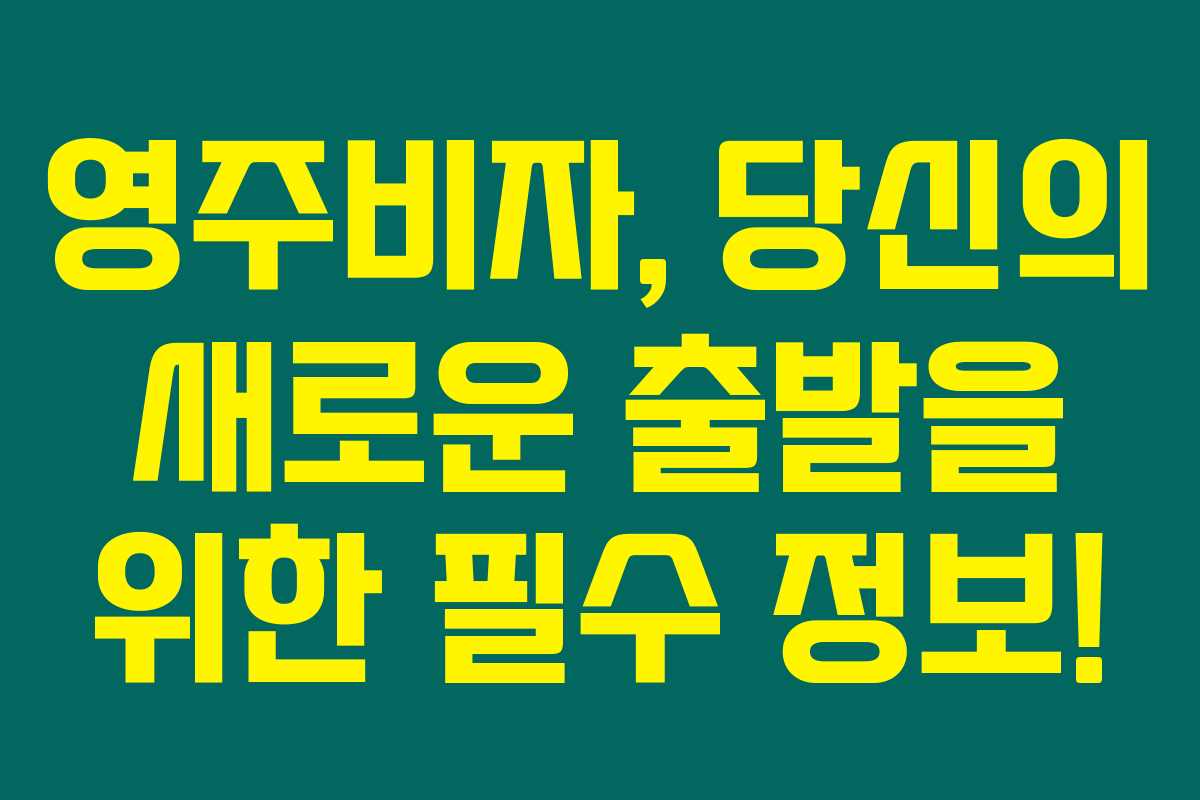 영주비자, 당신의 새로운 출발을 위한 필수 정보!