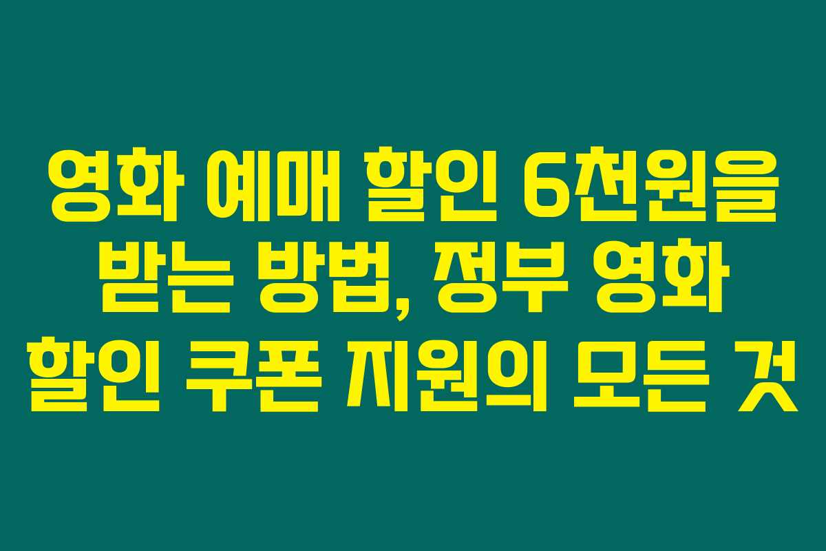 영화 예매 할인 6천원을 받는 방법, 정부 영화 할인 쿠폰 지원의 모든 것