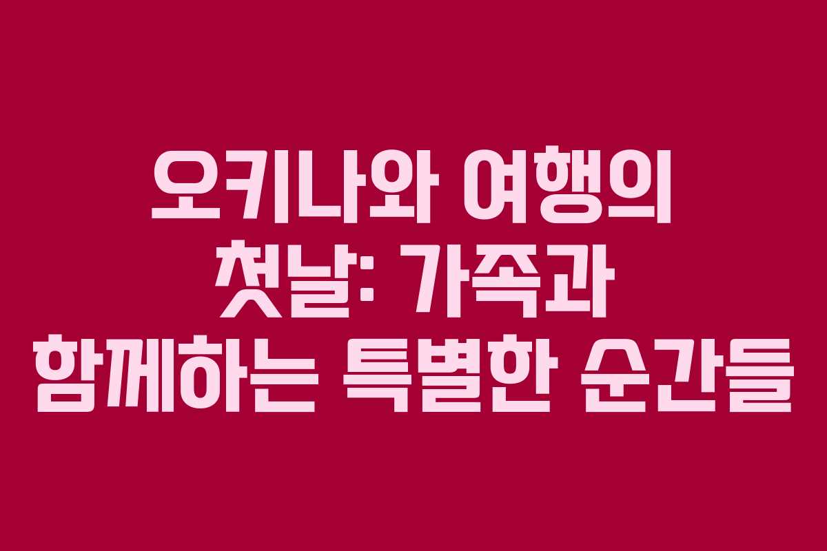 2024년 8월, 대가족과 함께한 오키나와 여행의 첫날을 소개합니다. 60대 부모님 두 분과 성인 5명, 5살 아기 2명을 포함해 총 9명이 함께한 여행이었습니다. 태풍의 영향으로 비행기에 대한 걱정이 많았지만, 다행히도 무사히 출발할 수 있었습니다.