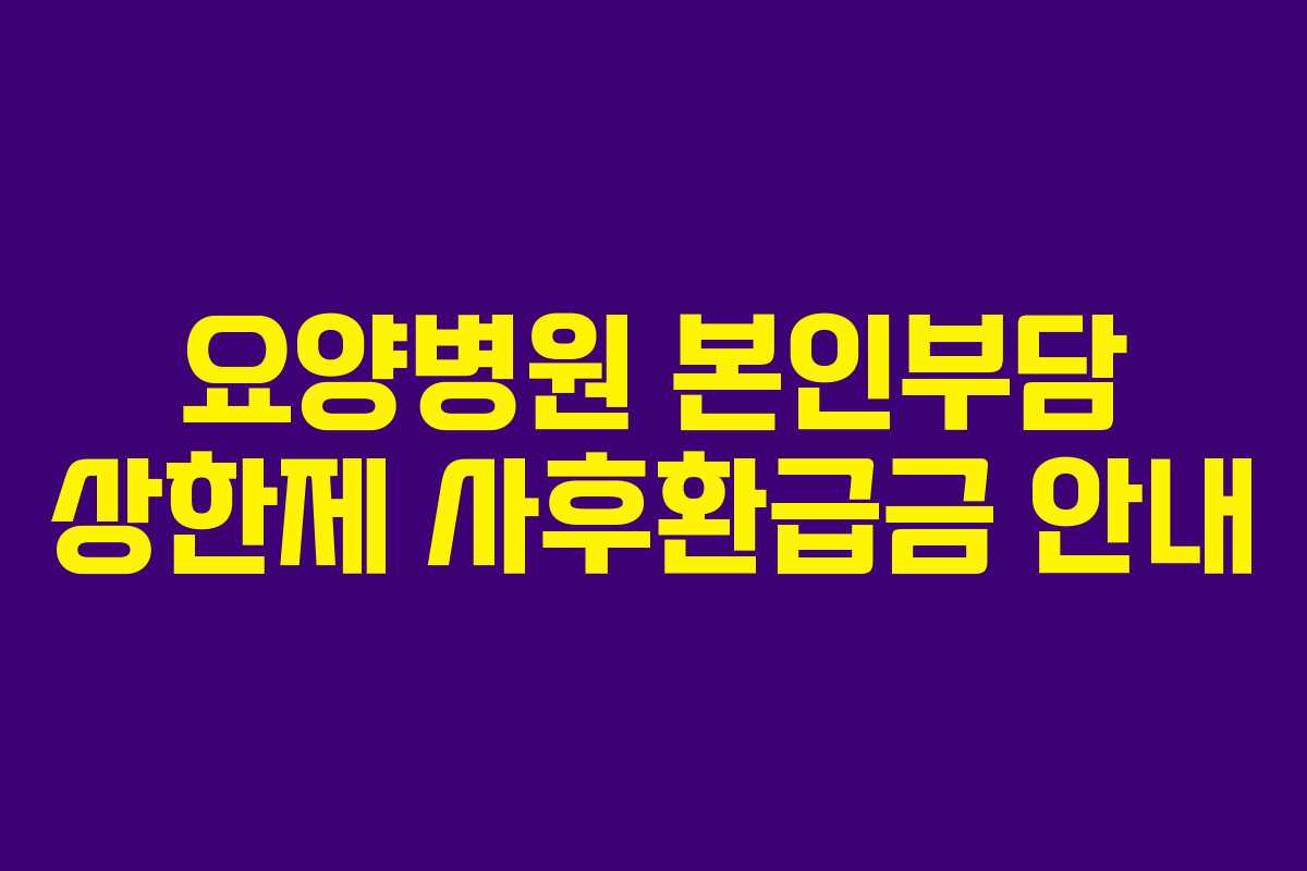 요양병원 본인부담 상한제 사후환급금 제도는 고액의료비 부담을 줄여주는 중요한 제도입니다. 이 제도를 통해 요양병원에서 발생한 과도한 의료비를 환급받을 수 있습니다. 환급금 신청을 원활히 진행하기 위해 필요한 서류와 절차를 숙지하고, 기한 내에 신청하여 혜택을 누리시기 바랍니다.