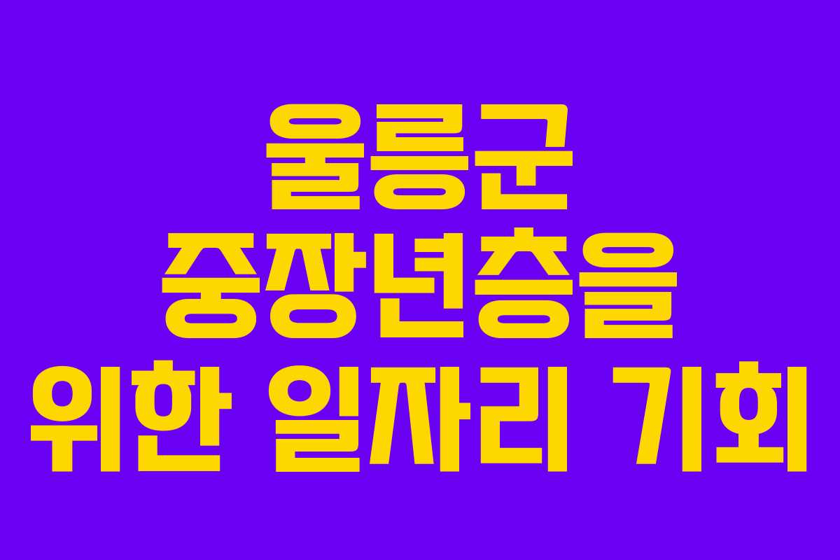 울릉군은 중장년층과 노인들을 위한 다양한 일자리 기회를 제공하고 있습니다. 울릉군청, 시니어클럽, 복지관 등 여러 기관을 통해 안정적인 일자리를 찾아볼 수 있습니다.