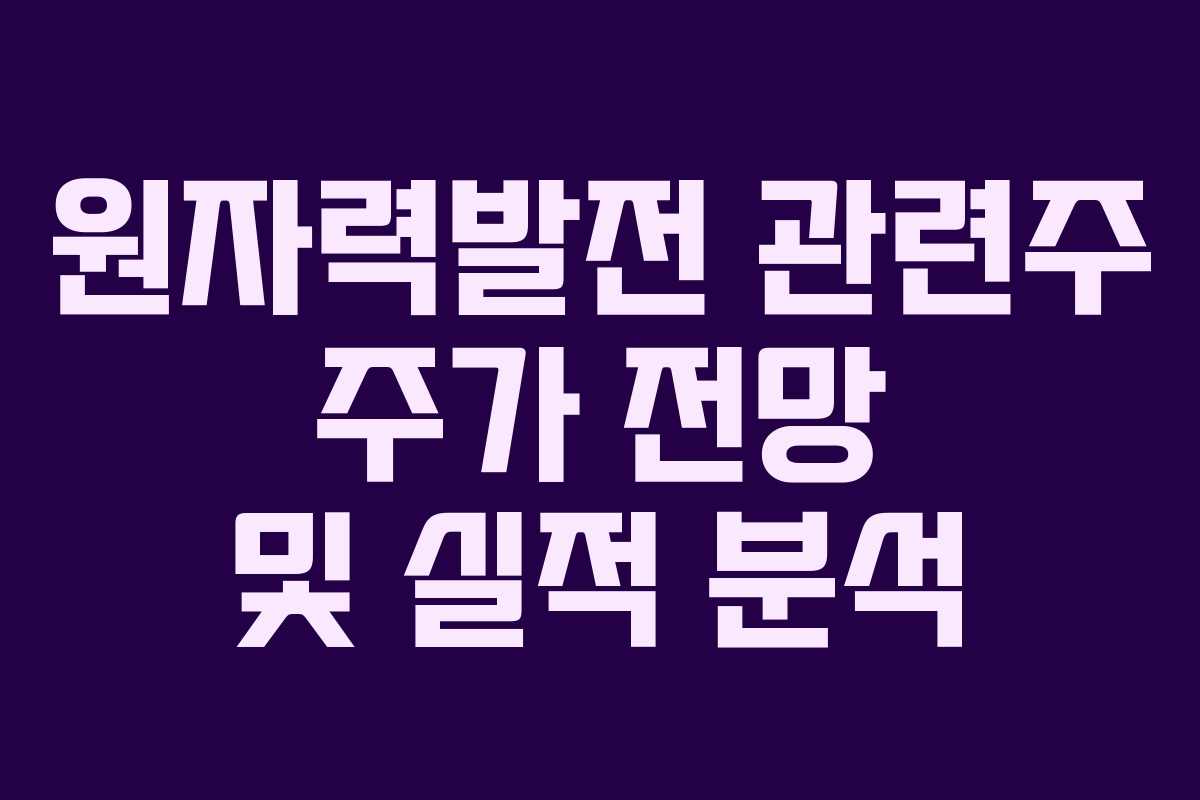 원자력발전 관련주는 최근 에너지 수요 증가와 환경 문제 해결을 위한 대안으로 주목받고 있습니다. 이에 따라 관련 기업들의 주가와 실적을 살펴보겠습니다.