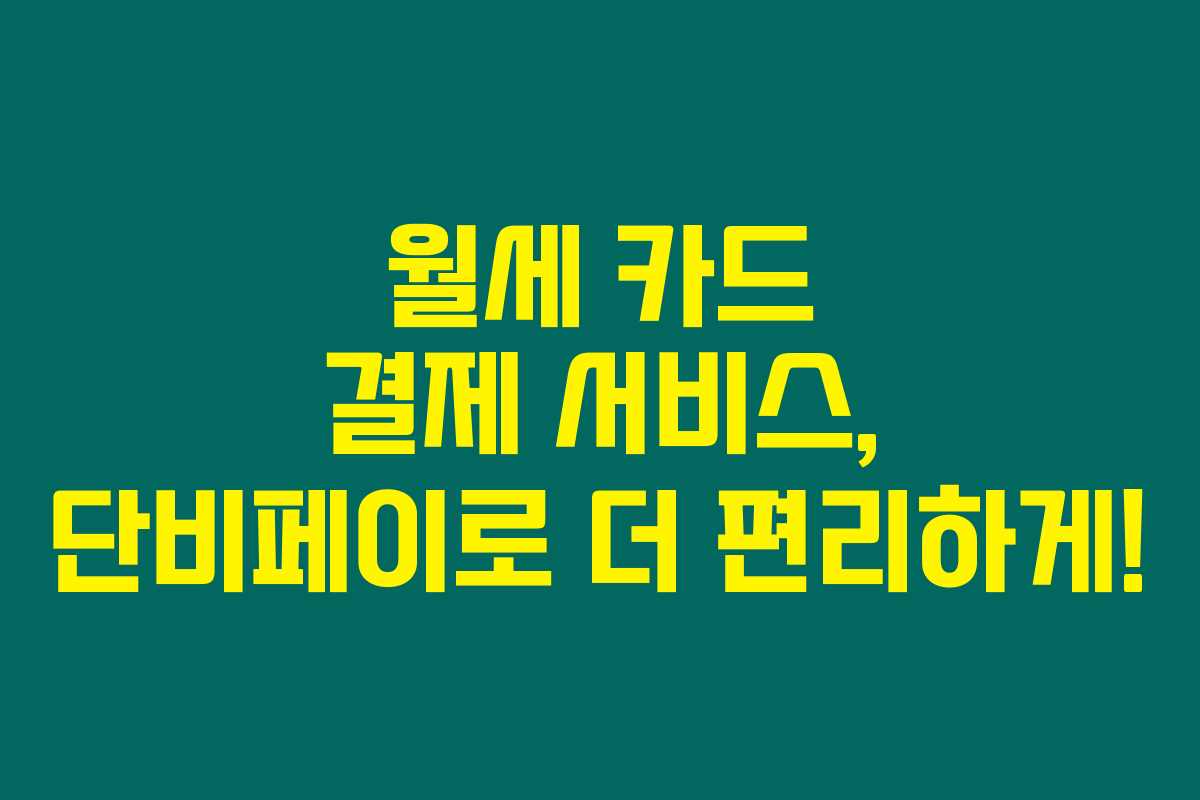 월세를 카드로 결제할 수 있는 단비페이에 대해 알아보세요. 아래를 읽어보시면 이 서비스가 어떤 장점을 가지고 있는지, 어떻게 사용해야 하는지 자세히 안내할게요. 카드로 결제하는 월세 서비스가 이제는 정말 필요해진 시대가 되었는데요. 그렇게면서 알게 된 여러 정보들을 여러분과 함께 나누고자 합니다.
