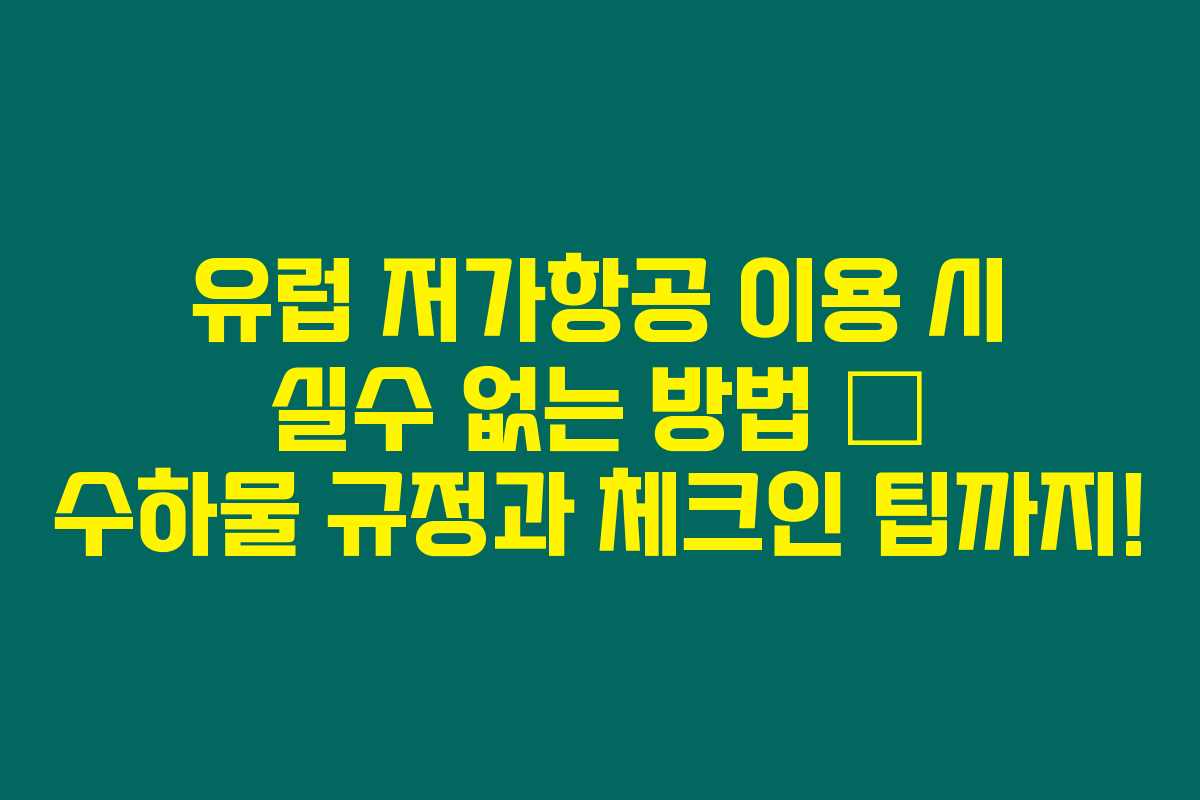 유럽 여행을 계획 중이라면, 저가항공은 비용 효율적으로 이동할 수 있는 최고의 방법이에요. 그러나 저렴한 가격 뒤에 숨겨진 다양한 규정들이 있어 체크하지 않으면 나중에 비용이 더 들 수 있으니 주의가 필요하지요. 아래를 읽어보시면 저가항공사의 수하물 규정과 체크인 팁, 놓치기 쉬운 사항들을 자세히 알아볼 수 있어요.