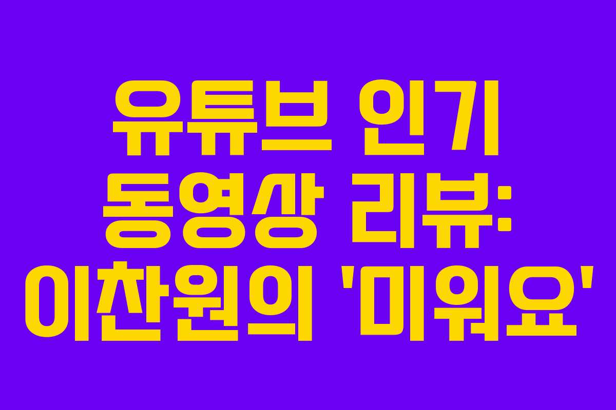 유튜브는 다양한 콘텐츠가 있는 플랫폼으로, 특히 인기 있는 트롯 영상들이 많은 사랑을 받고 있습니다. 그중에서도 이찬원의 ‘미워요’는 많은 이들의 관심을 받고 있습니다. 이번 포스팅에서는 이찬원의 ‘미워요’를 포함한 유튜브 인기 동영상에 대한 리뷰를 진행하겠습니다.