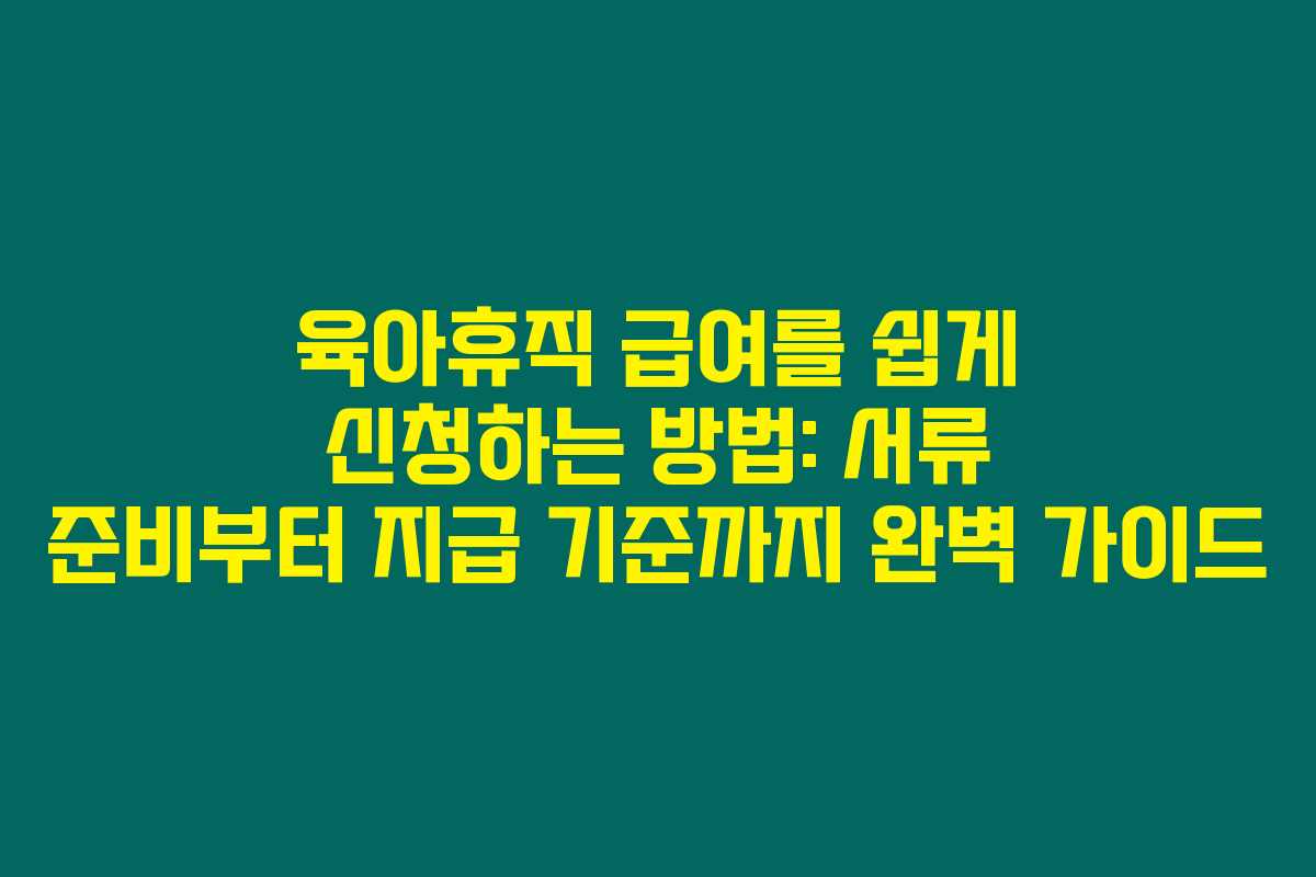 육아휴직 급여를 쉽게 신청하는 방법: 서류 준비부터 지급 기준까지 완벽 가이드