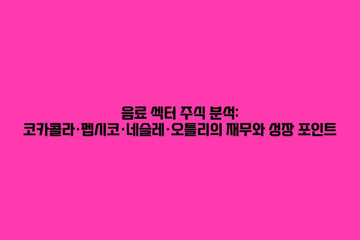 코카콜라와 펩시코는 안정적 현금흐름과 배당 매력으로 꾸준한 관심을 받는 한편, 네슬레는 다각화된 라인업으로 새로운 성장 포인트를 찾고 있습니다. 오틀리는 성장 초기 단계로, 데이터 축적과 글로벌 확장 속도에 따라 변동성이 크지만 상승 여지가 있습니다.