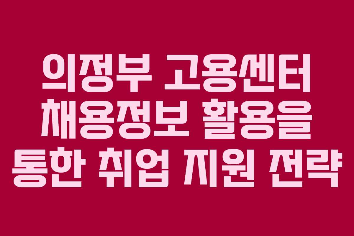의정부 고용센터 채용정보 활용을 통한 취업 지원 전략