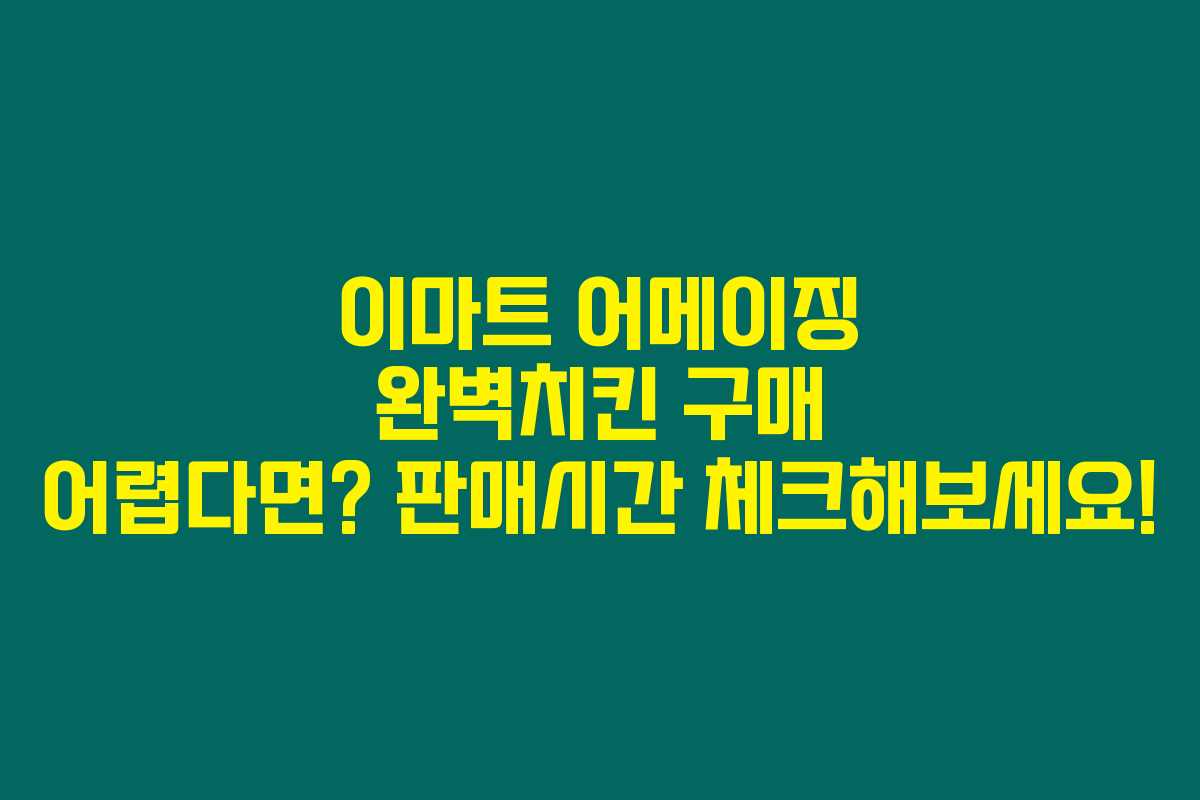 이마트의 어메이징 완벽치킨, 정말 구매하기 어렵다는 소문 많이 들으셨죠? 가격은 착하지만 사람들은 줄서서 기다리고 있으니, 대체 언제 사야 성공할 수 있을까요? 치킨 전쟁에 참여하기 전, 판매시간을 잘 알아두면 구매 확률이 높아질 거예요. 아래를 읽어보시면, 구매에 필요한 모든 정보를 제공할게요!