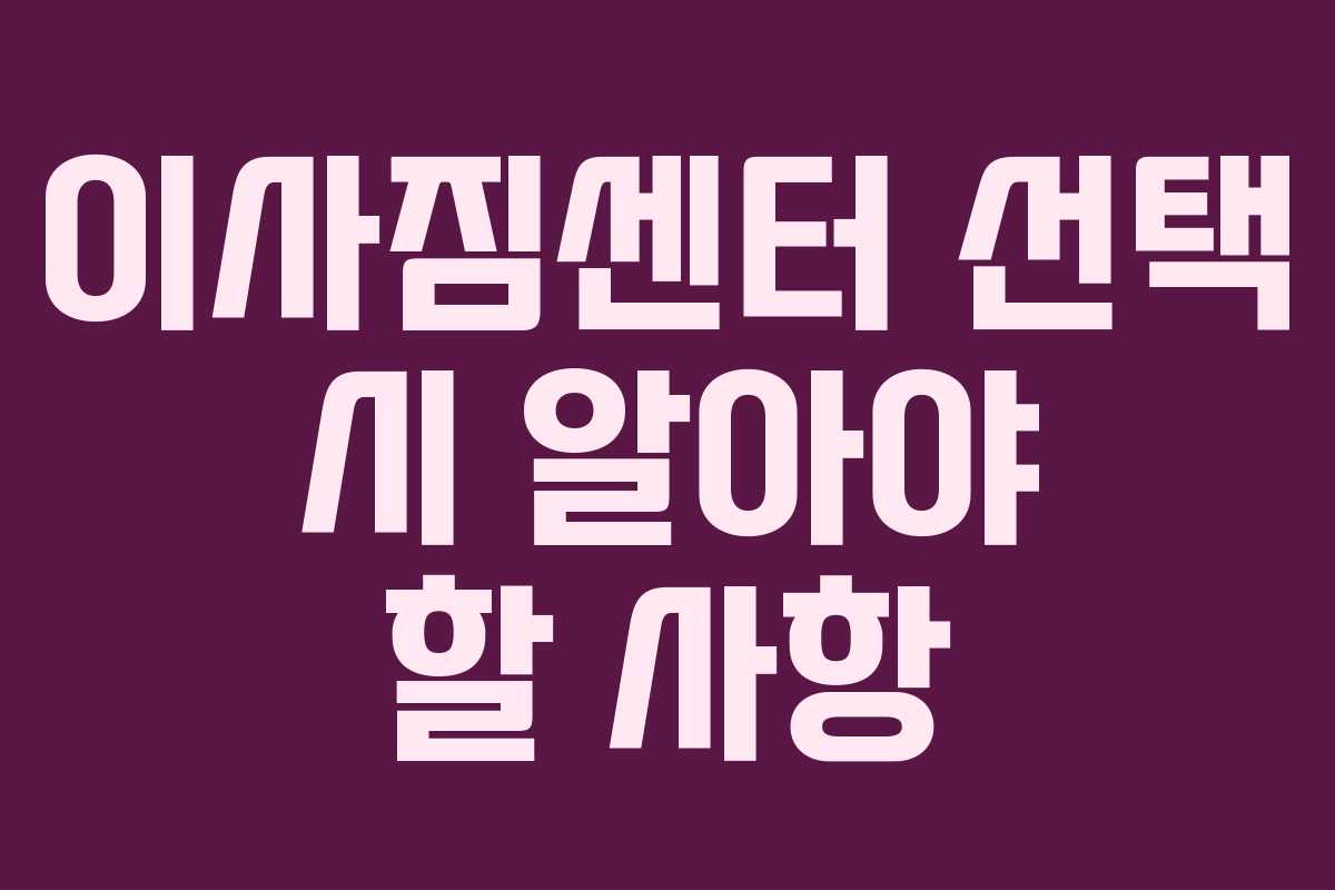 이사짐센터 선택 시 가장 중요한 요소는 무엇인가요?