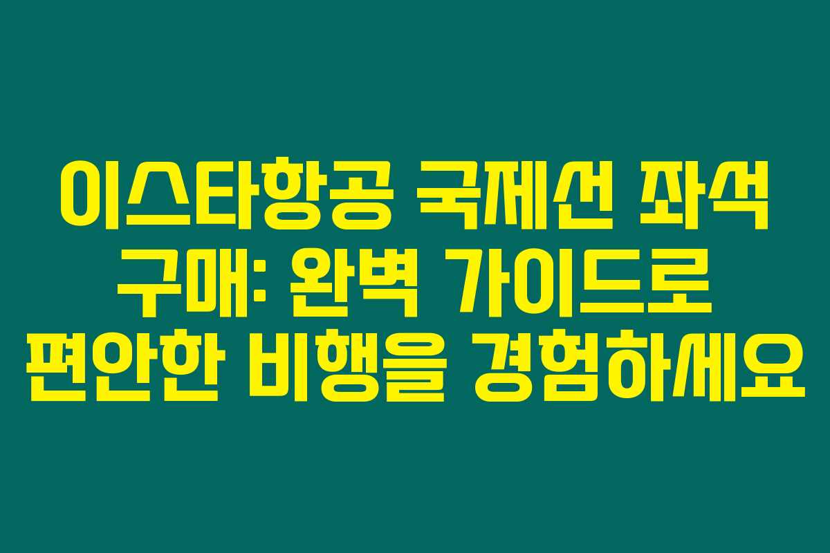- 1. 이스타항공 국제선 좌석 구매 방법: 단계별 안내