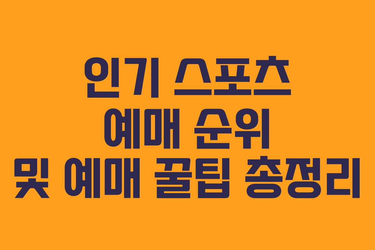 스포츠 경기를 관람하는 것은 많은 사람들에게 즐거움과 감동을 주는 경험입니다. 이 글에서는 인기 스포츠 예매 순위와 예매 시 유용한 팁을 소개하여 더욱 알차고 즐거운 관람을 돕고자 합니다.