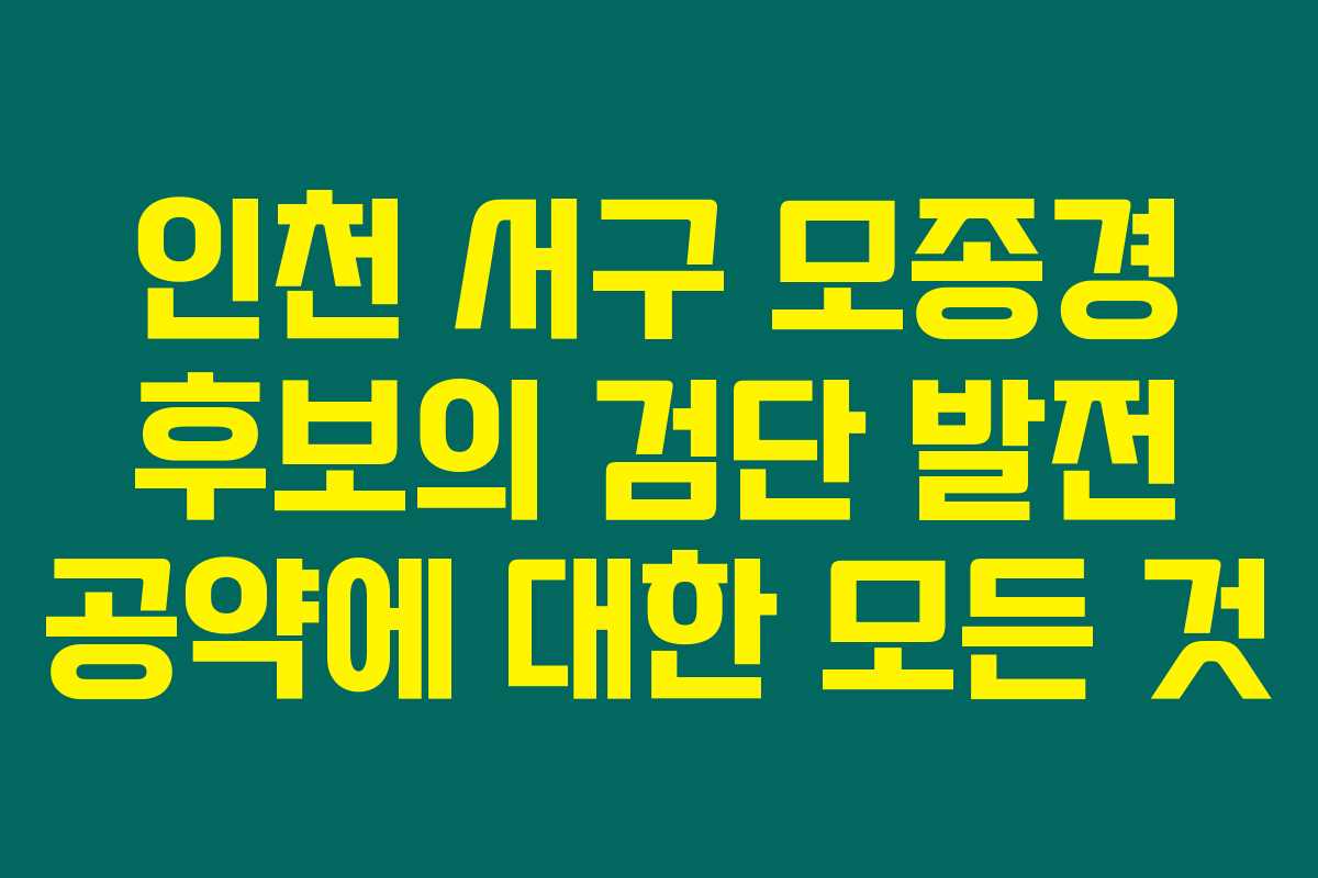 제가 직접 경험해본 결과로는, 인천 서구의 모종경 후보는 검단 지역의 교통 문제와 주민의 삶의 질을 높이기 위한 다양한 공약을 제시하고 있습니다. 검단 지역은 주거지로서 인구가 급격히 늘어나면서 교통과 교육 문제 등이 점점 더 불거지고 있는 상황이죠. 아래를 읽어보시면 모종경 후보가 제안한 각종 공약에 대한 자세한 내용을 확인할 수 있습니다.
