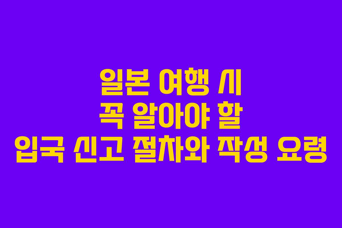 일본으로 여행을 떠날 때, 필수적으로 알아야 할 사항 중 하나가 바로 입국 신고 절차입니다. 원활한 여행을 위해 입국 신고를 사전에 준비하는 것이 중요합니다. 이번 글에서는 입국 신고서의 작성법부터 유의해야 할 점까지 자세히 안내하겠습니다. 미리 준비해 두면 일본 공항에서의 긴 대기 시간을 줄일 수 있습니다. 즐겁고 편안한 일본 여행을 위해 함께 알아보도록 하겠습니다.