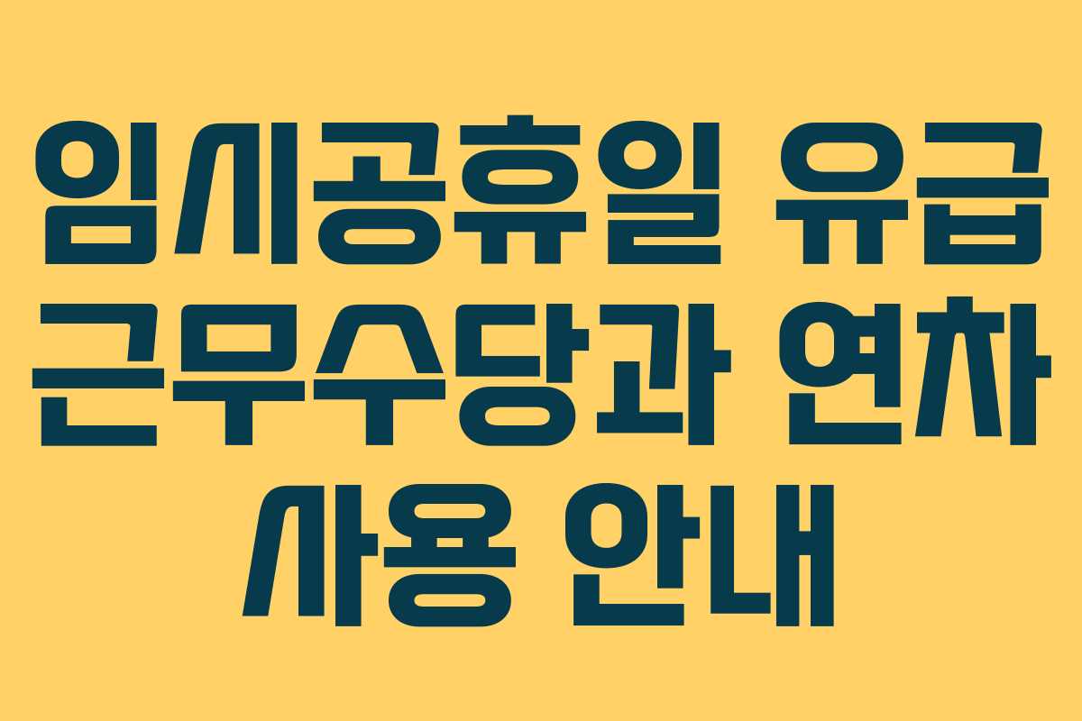 임시공휴일에 대한 규정은 복잡할 수 있으나, 근로자의 권리를 보호하기 위한 중요한 제도입니다. 근무 환경에 맞게 정보를 활용하시고, 궁금한 점이 있다면 인사팀이나 노무사와 상담하는 것이 좋습니다. 여러분의 권리를 꼭 챙기시기 바랍니다.