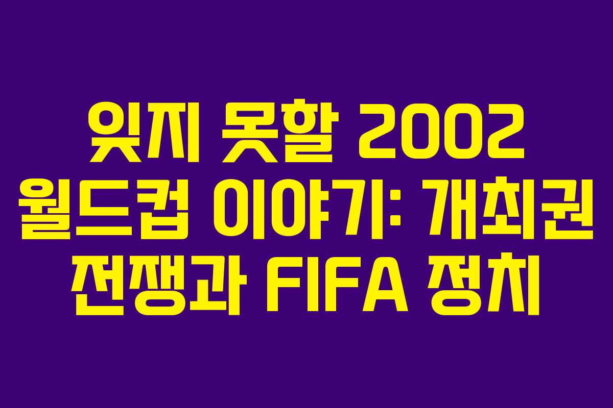 2002년 한일 월드컵은 단순한 스포츠 이벤트를 넘어 정치와 경제의 복잡한 이해관계가 얽힌 사건이었습니다. 이 이야기는 두 나라의 열망과 경쟁의 결과로 탄생한 역사적인 순간을 되돌아보는 내용입니다.