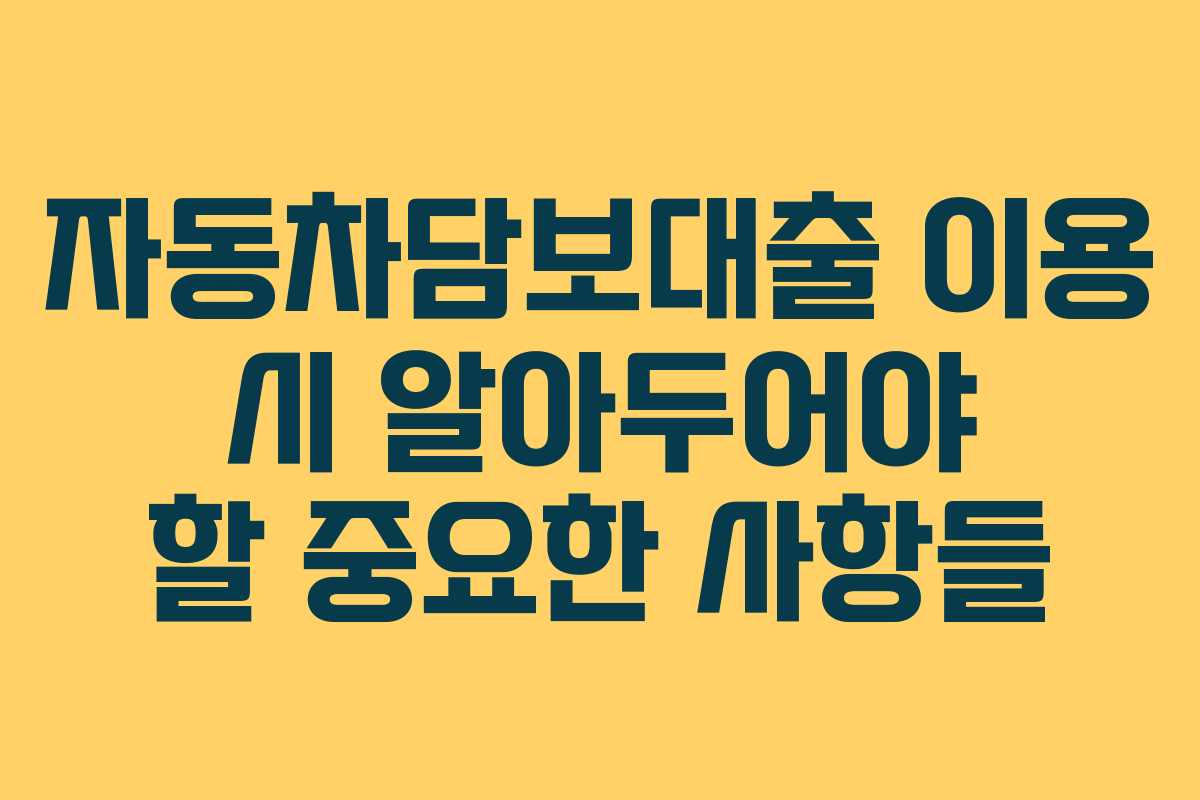 자동차담보대출은 차량을 담보로 하여 필요한 자금을 확보할 수 있는 방법으로, 저신용자에게 유리한 대출 상품으로 자리잡고 있습니다. 하지만 이러한 대출을 이용하기 전에는 몇 가지 주의사항을 반드시 숙지해야 합니다. 이번 글에서는 자동차담보대출의 신청 자격부터 대출 조건, 상환 방법, 주의사항까지 상세히 살펴보겠습니다.