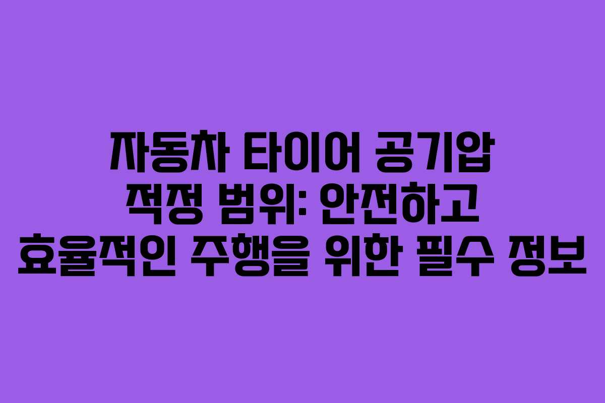 자동차의 타이어 공기압은 안전한 주행과 연비에 중요한 요소로 작용합니다. 공기압이 적정 범위를 벗어나면 타이어 마모와 사고의 위험을 초래할 수 있습니다. 이 글에서는 타이어 공기압의 적정 범위와 유지의 중요성, 그리고 타이어 관리 방법에 대해 설명하겠습니다.