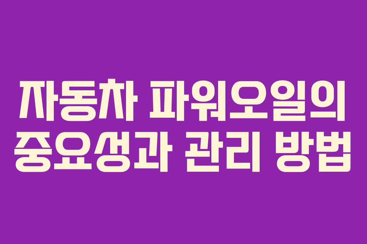 자동차의 파워오일은 안전하고 원활한 주행을 위해 필수적인 요소입니다. 이 글에서는 파워오일의 역할, 교환 주기, 부족 시 증상 및 확인 방법에 대해 알아보겠습니다.