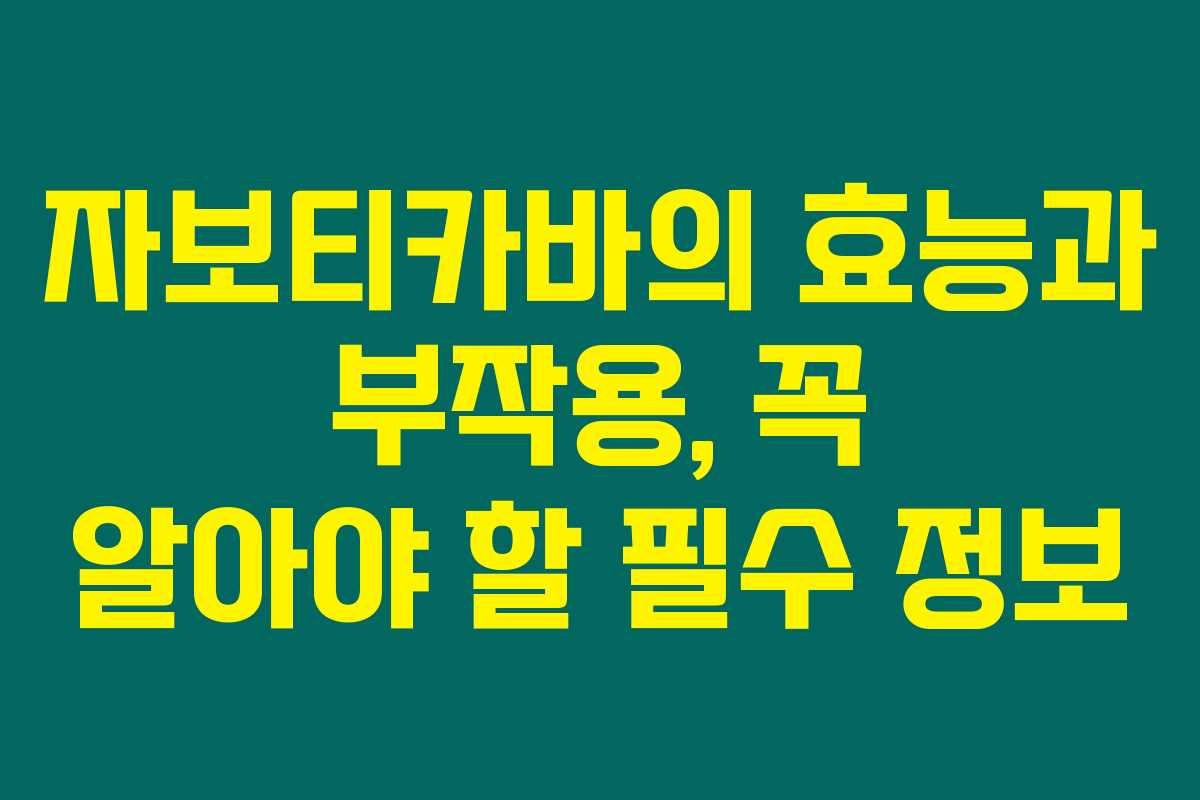 자보티카바에 대해 관심이 많으신가요? 건강에 이로운 자보티카바의 효능과 부작용을 아직 확인하지 못한 분들께 꼭 알려드리고 싶은 정보들이 많답니다. 특히 자보티카바를 섭취하고 있는 분들이라면 이 글을 통해 많은 도움이 될 거예요. 자보티카바의 매력이 무엇인지 같이 알아보아요.