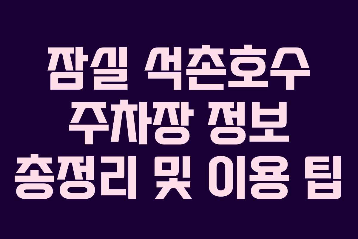 잠실 석촌호수 주차장 정보 총정리 및 이용 팁