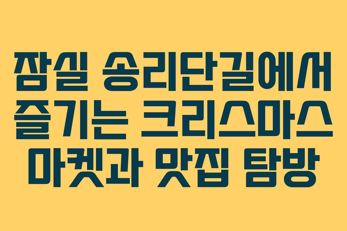 겨울의 정취가 물씬 풍기는 잠실 송리단길에서 크리스마스 마켓을 구경하고 맛있는 음식을 즐기는 코스를 소개합니다. 1박 2일 동안의 특별한 여행 이야기를 함께 나누겠습니다.