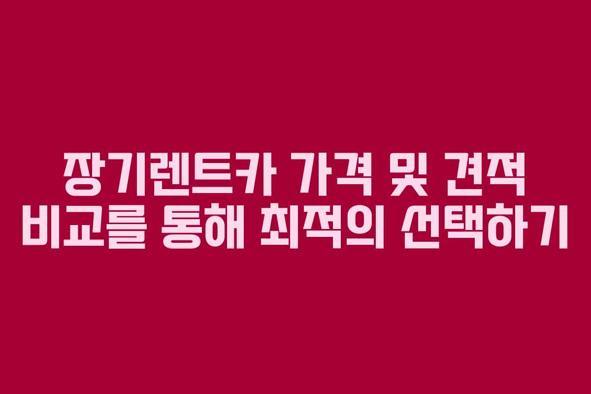 장기렌트카 선택을 위한 실전 가이드