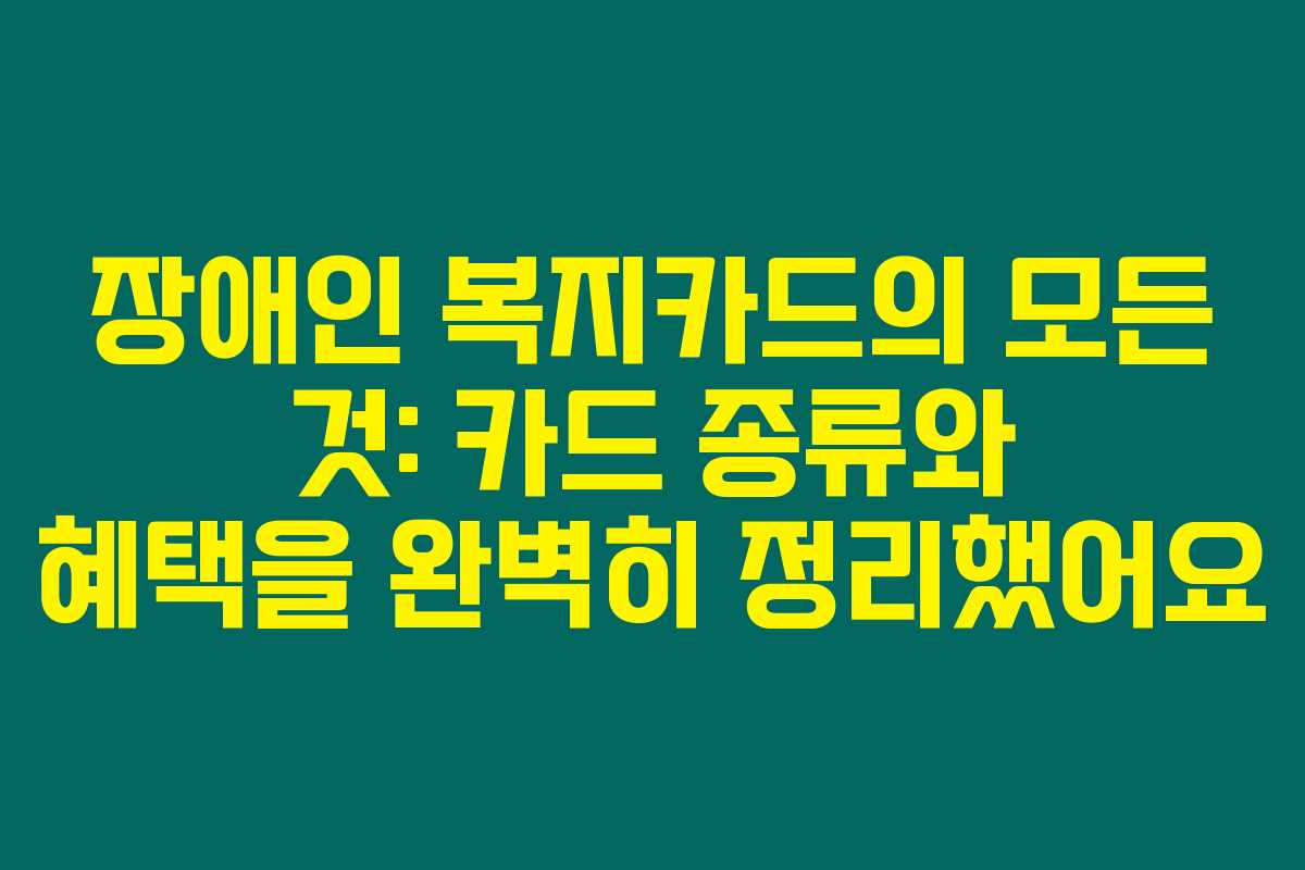 장애인 복지카드가 어떤 것인지 더 잘 이해하고 싶으시다면, 꼭 아래 내용을 체크해보세요. 다양한 복지혜택을 제대로 이용하는 안내서가 될 거랍니다!