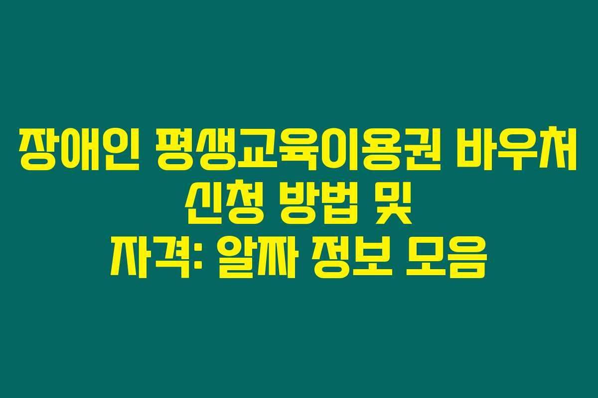 장애인 평생교육이용권 바우처 신청 방법 및 자격: 알짜 정보 모음