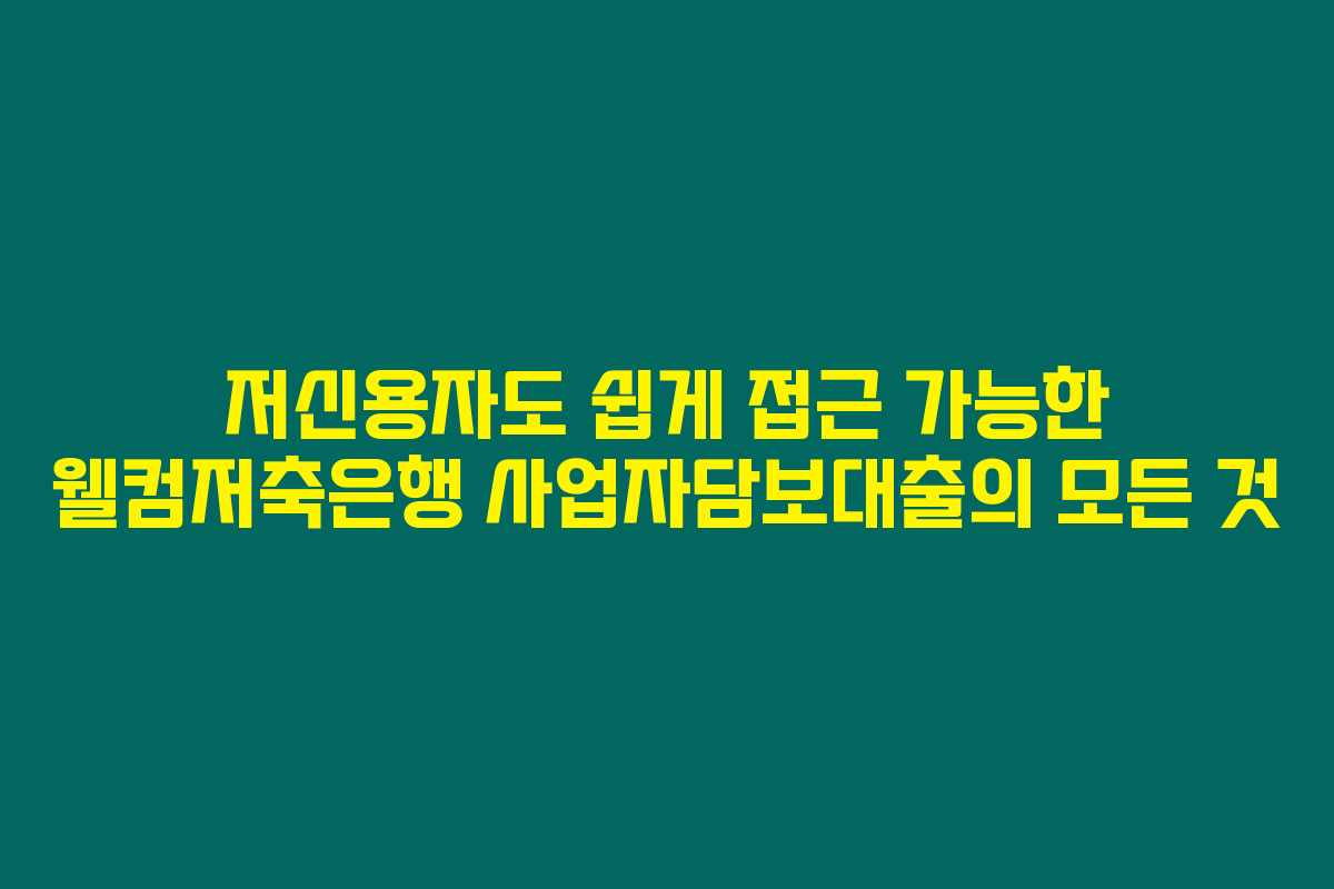 - 2. 웰컴저축은행 사업자담보대출의 조건