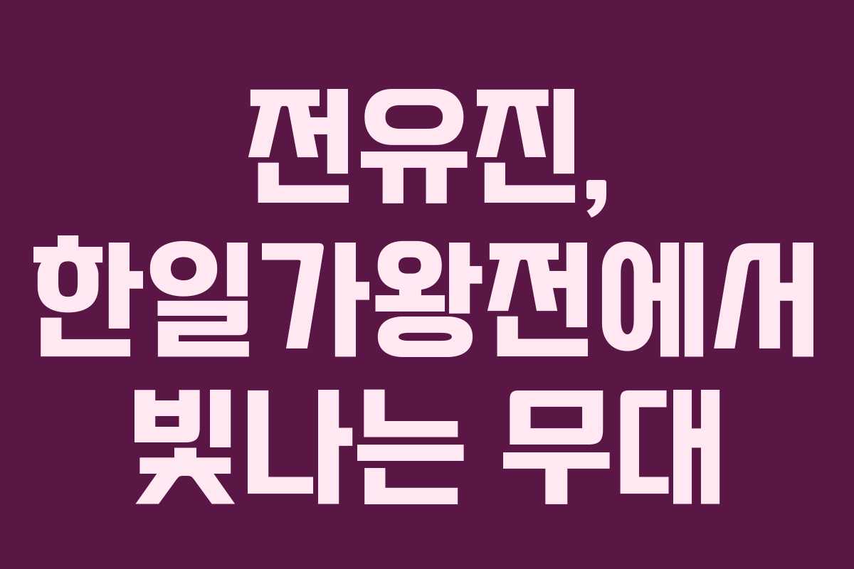 전유진은 최근 방송된 ‘현역가왕 한일가왕전’에서 화려한 무대를 선보이며 주목받고 있습니다. 이 프로그램은 한국과 일본의 톱 7이 경쟁하는 국가 대항전으로, 전유진은 한국 대표로 출전하여 뛰어난 실력을 발휘했습니다.
