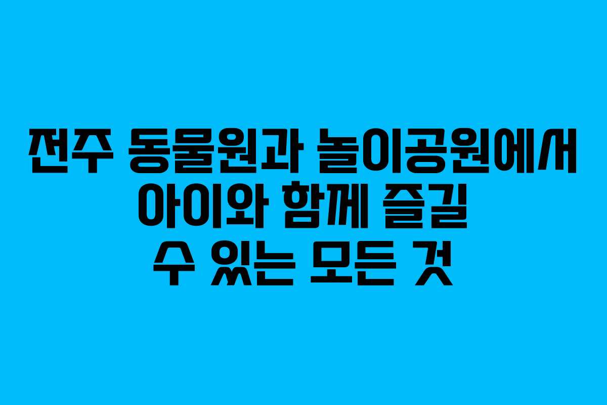 전주에서의 소중한 추억을 만들고 싶다면 전주 동물원과 놀이공원을 방문해 보세요. 이곳에서 아이들과 함께하는 즐거운 시간은 평생 잊지 못할 특별한 경험이 될 것입니다.