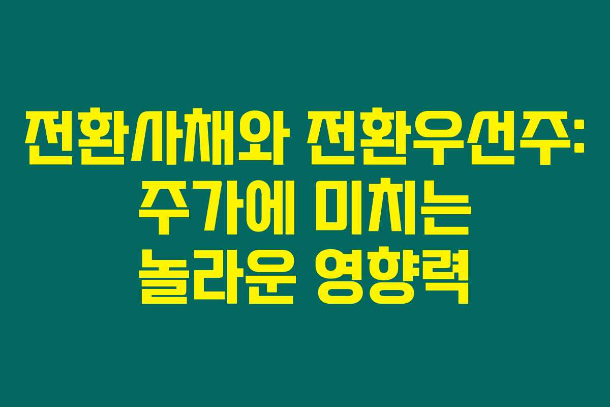 전환우선주 또한 주식으로 전환되면 매도 압력을 증가시켜 주가 하락을 유도할 수 있으며, 투자자의 심리를 부정적으로 변화시킬 수 있습니다.