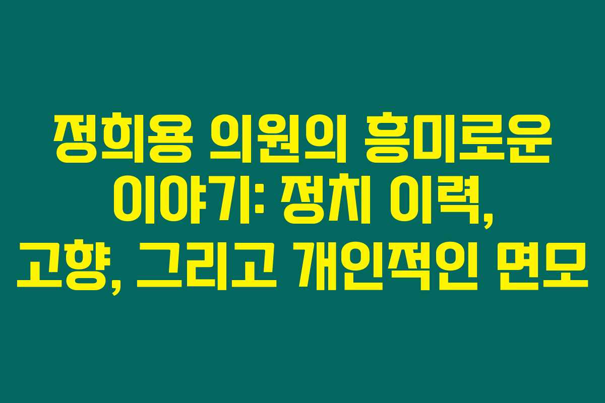 정희용 의원은 정치적 이력 외에도 많은 것들로 사람들에게 기억되고 있어요. 그의 고향, 가족 등에 대한 정보도 중요한 부분입니다.
