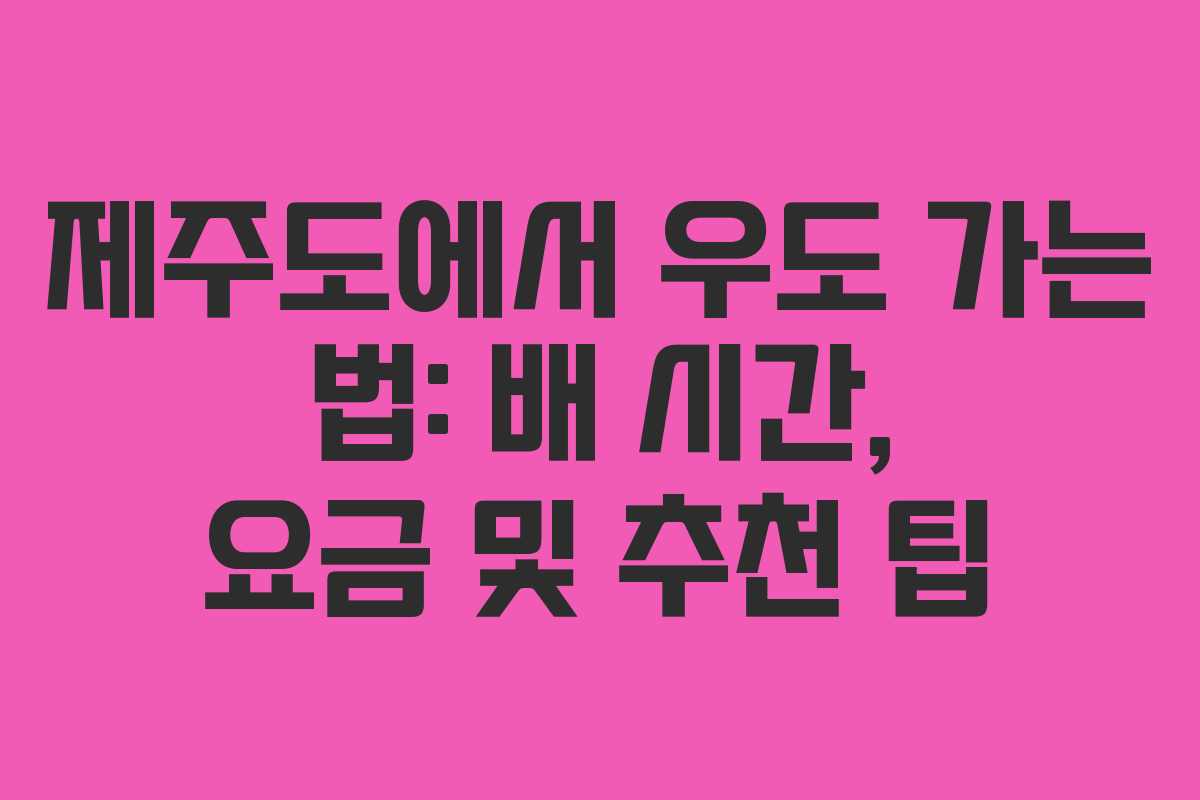 제주도 여행 중 우도 방문은 많은 이들에게 힐링의 기회를 제공합니다. 이번 포스팅에서는 제주도에서 우도까지 가는 방법, 배 운행 시간, 요금, 그리고 추천 팁을 소개하겠습니다.