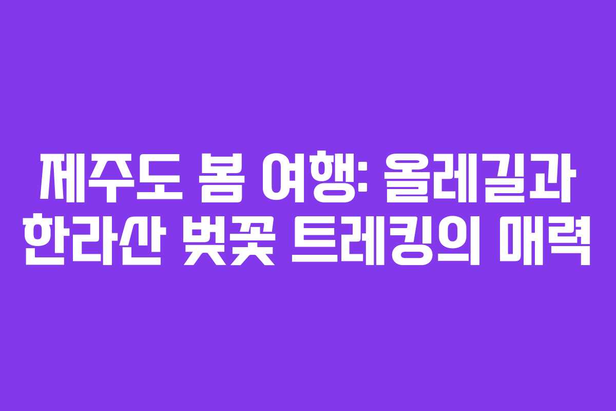제주도의 봄은 놓쳐서는 안 될 특별한 순간을 선사한다. 올레길과 한라산 벚꽃 트레킹을 통해 제주도의 아름다움을 느끼며, 따뜻한 바람과 꽃향기가 가득한 여행을 즐겨 보길 바란다.