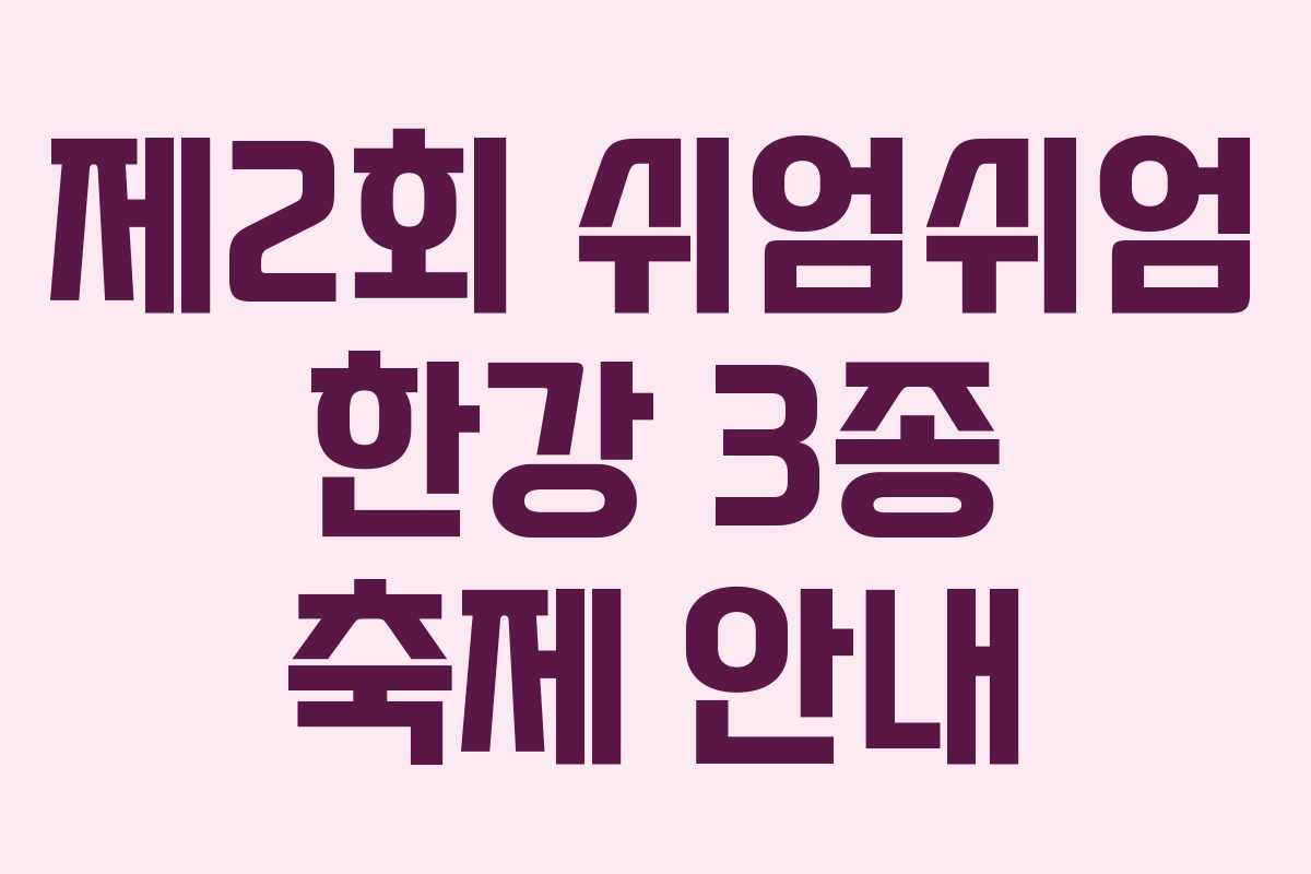 제2회 쉬엄쉬엄 한강 3종 축제에 많은 관심과 참여 부탁드립니다. 여러분의 참여를 기다립니다.