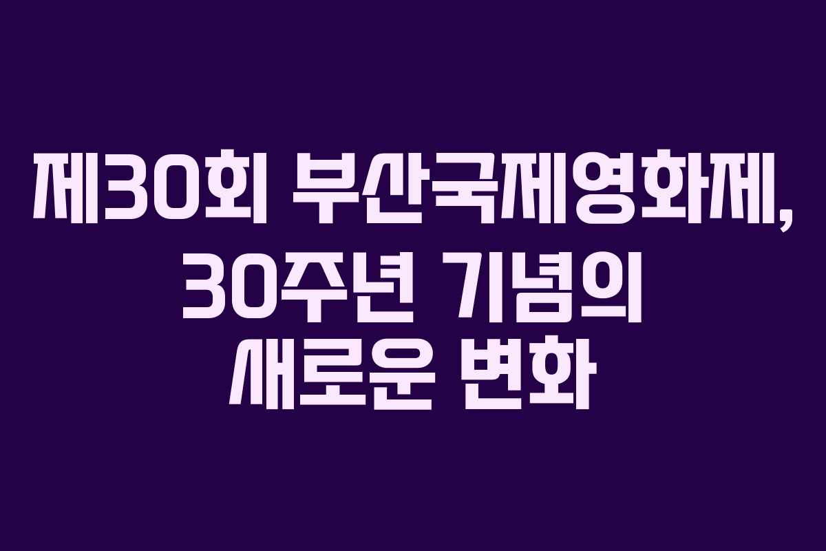 부산국제영화제는 2025년 9월 17일부터 26일까지 열리며, 30주년을 맞아 중요한 변화와 성장을 담고 있습니다. 올해 영화제는 총 64개국에서 241편의 영화가 상영되며, 아시아 경쟁 부문이 신설되어 더욱 본격적인 경쟁 체제가 도입됩니다.