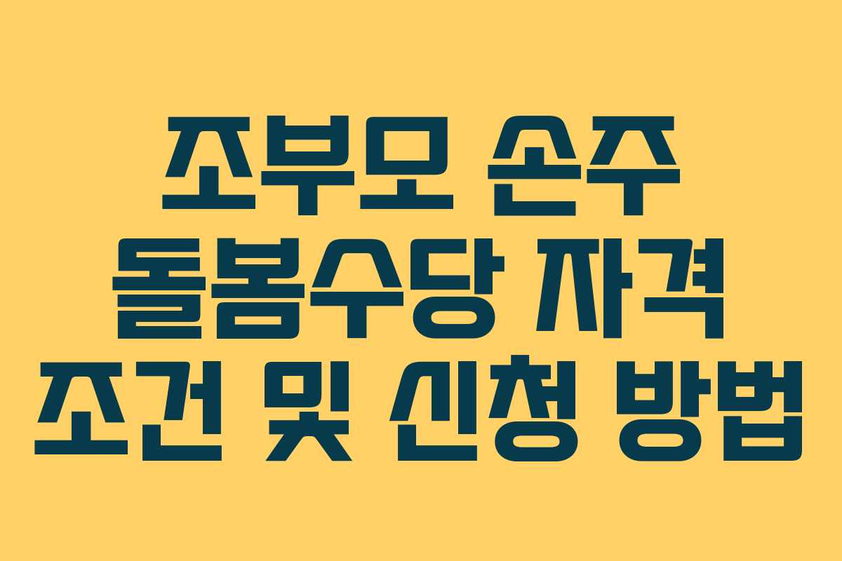 조부모 손주 돌봄수당은 맞벌이 가정에서 조부모나 친인척이 영아를 돌볼 경우, 정부나 지방자치단체가 돌봄 비용을 지원하는 제도입니다. 이 제도는 지역별로 자격 조건과 지원 내용이 다르므로, 서울, 경기, 광주를 중심으로 자세하게 알아보겠습니다.