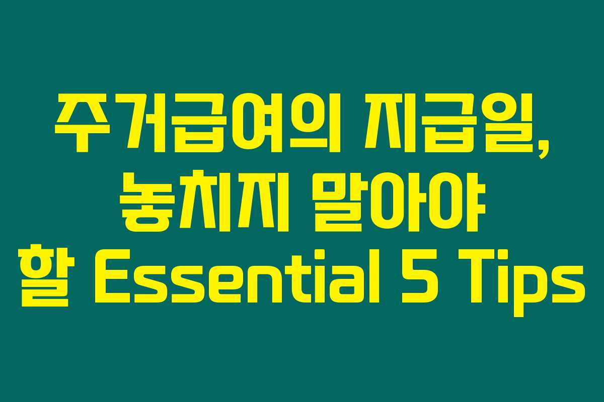 주거급여 지급일은 지역마다 차이가 있어 혼란스러울 수 있습니다. 정말 많은 분이 이 점에서 고민하시더라고요.
