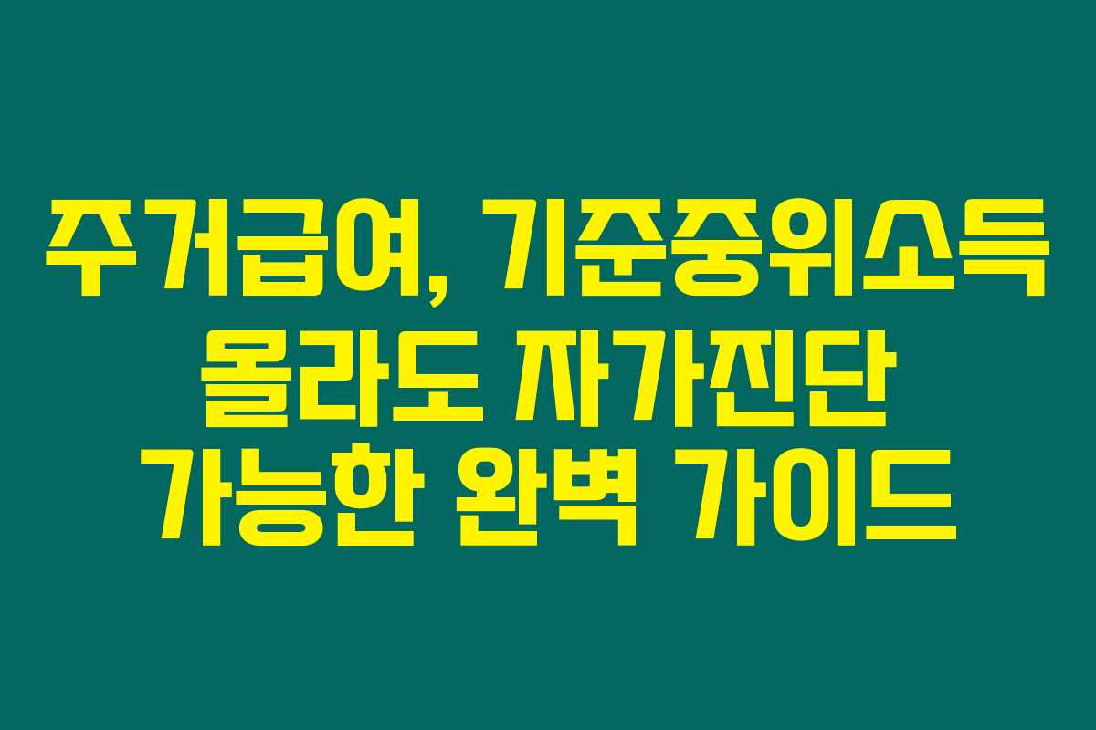 제가 판단하기로는, 주거급여에 대해 궁금해하는 반복적인 질문들이 많습니다. 주거급여는 저소득 가구들에게 주거비를 지원해주는 제도로, 기준중위소득의 복잡한 계산을 몰라도 간편하게 자가진단할 수 있는 방법이 있습니다. 아래를 읽어보시면 자가진단 방법과 주거급여의 전반적인 이해를 돕는 정보가 포함되어 있습니다.