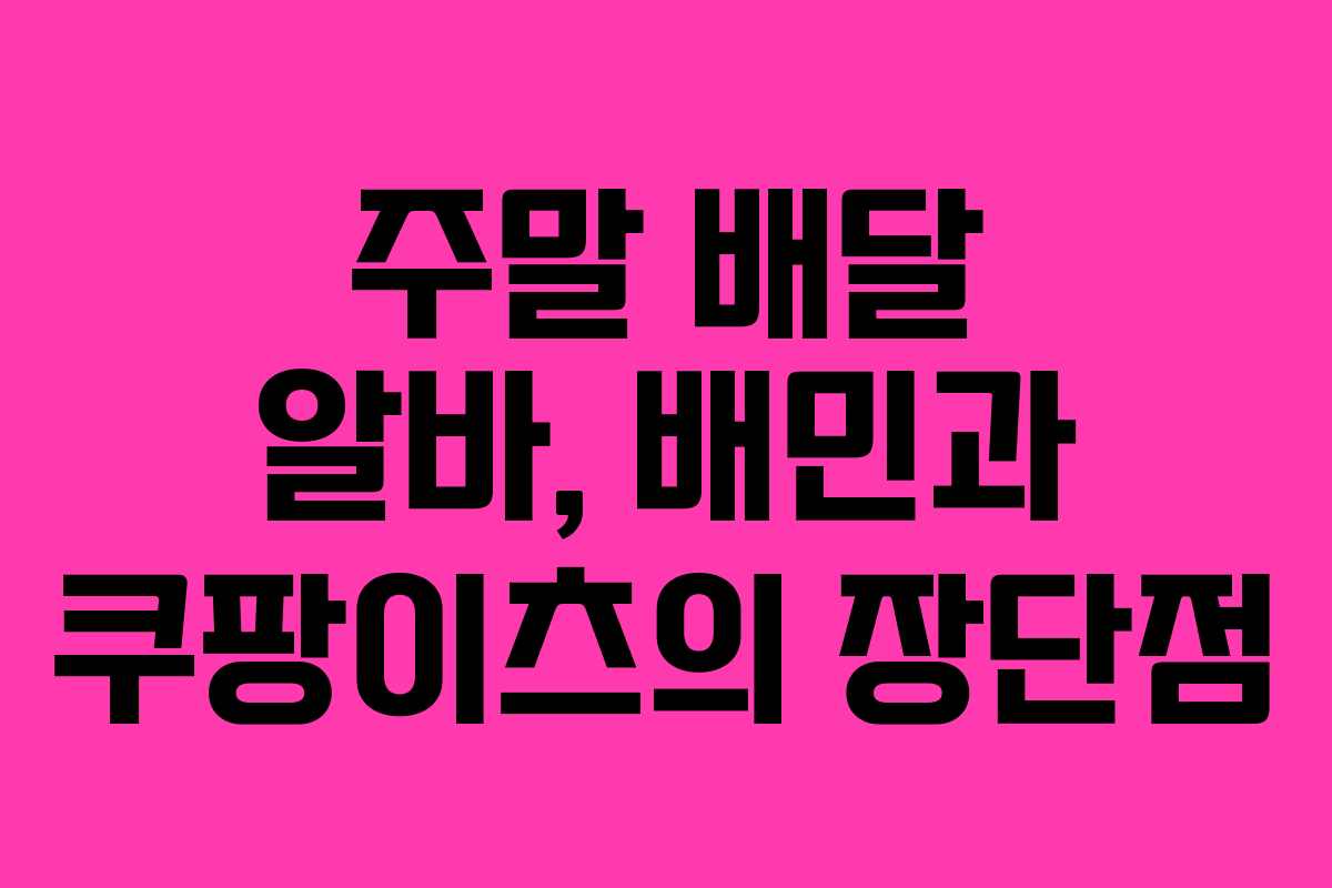 주말 배달 알바는 유연한 근무 환경과 안정적인 수익을 제공하지만, 체력 소모와 날씨의 영향을 고려해야 합니다. 이러한 점들을 잘 이해하고 준비한다면 좋은 경험이 될 것입니다.