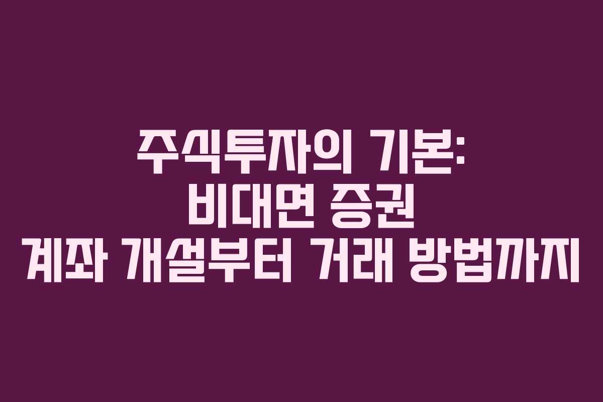 주식 투자는 많은 이들에게 매력적인 투자 선택지입니다. 그러나 어떻게 시작해야 할지 막막한 초보 투자자들을 위해, 비대면 증권 계좌 개설에서부터 실제 주식 거래 방법까지 자세히 설명합니다.