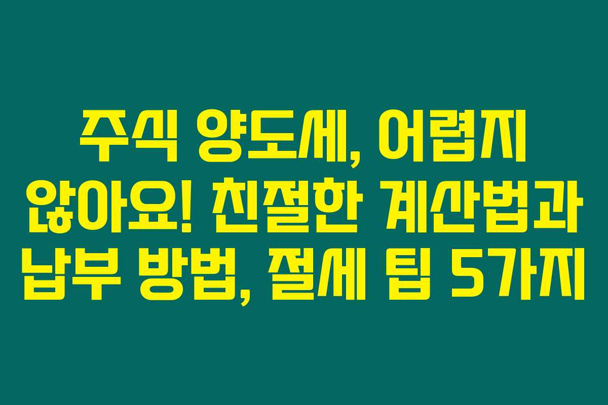 제가 직접 경험해본 바로는 주식 양도세 관련 정보는 많은 분들에게 흥미롭고 필요하다고 판단됩니다. 이번 글에서는 주식 양도세 계산 방법, 납부 절차, 그리고 실질적인 절세 팁 5가지를 쉽게 설명해드릴 거에요. 특히 주식 투자가 보편화되니, 양도세에 대한 이해는 필수죠.